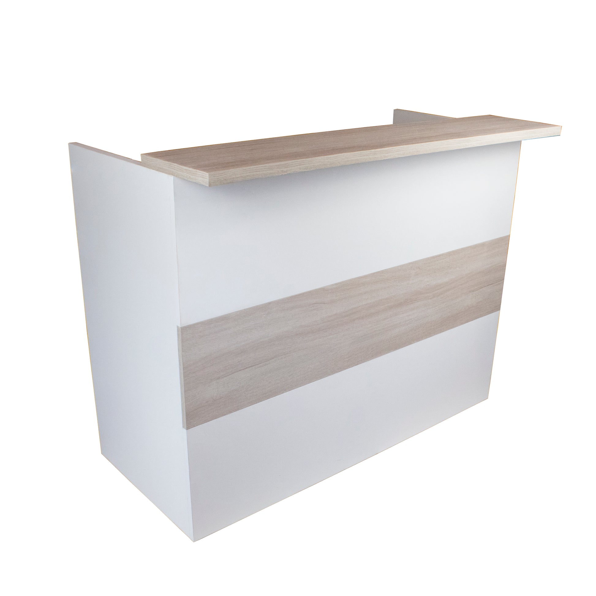 Mostrador Recepción Ebro. 100/180x60/75x110 cm. Con mesa interior. Blanco + Roble Stel
