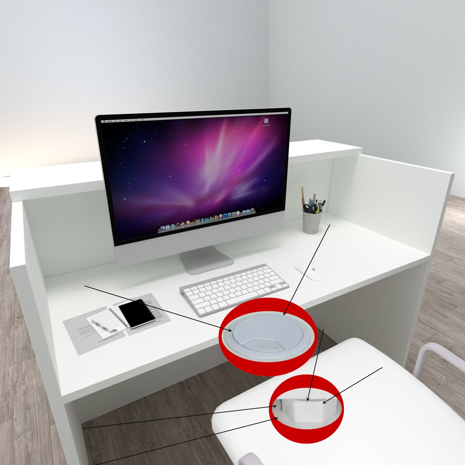 ✔ È dotato di 2 passacavi sul piano di lavoro interno e di livellatori sul fondo per regolare l'altezza nei quattro punti di appoggio. È possibile aumentare l'altezza fino a 2 cm.